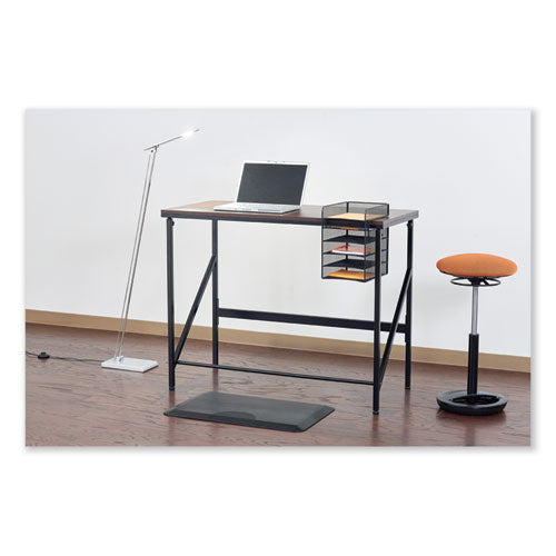 The Onyx horizontal hanging storage unit is a wire mesh organizer that easily attaches to a desktop and hangs below it, providing underdesk storage that saves space and time. Features one desktop tray and four underdesk trays for sorting letter-si