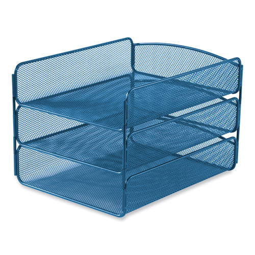 The Onyx Triple Tray is a steel mesh desk organizer that features three interlocking trays held in place by pins. The desk tray holds letter-size papers, and aids in office supply organization and file storage. The office organizer is built with a- Mesh tray desk organizer.