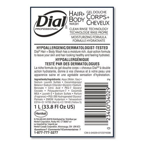 Dial® Hair + Body Wash has a moisture rich, dual-action formula to leave your skin and hair looking healthy and feeling hydrated. Clean Rinse technology; moisturizing formula is hypoallergenic and dermatologist-tested. For Use with Dial® Profession