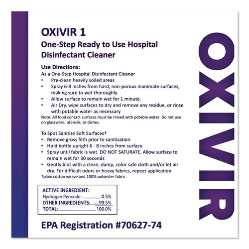 Next generation, ready-to-use disinfectant cleaner, based on proprietary hydrogen peroxide (AHP) technology, delivers fast, effective virucide, bactericide, tuberculocide, fungicide and non-food contact sanitizer performance. Kills MRSA and Norovirus