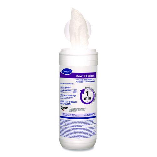 Image of Diversey Oxivir TB Disinfectant Wipes, 7 x 6, White, 60/Canister, 12 Canisters/Carton