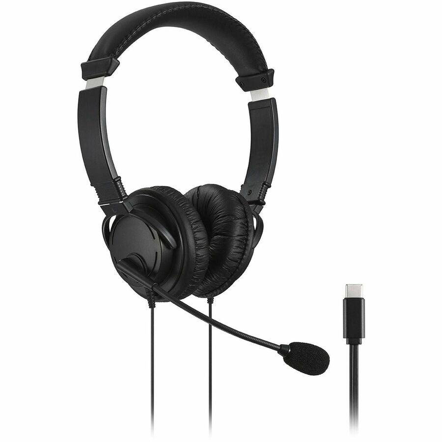 Kensington® Headphone,Noise-Canceling,Hi-Fi,w/Mic/6' Cord,USB-C,BK