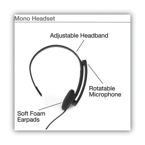 Mono headset with adjustable microphone and in-line remote combines clear sound, lasting comfort and versatile functionality, making it ideal for plug-and-play performance in a variety of applications. An ergonomic design with an adjustable headband