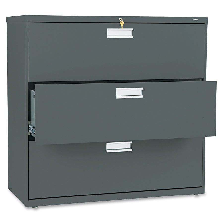 Counterweight included, where applicable, to meet ANSI/BIFMA stability requirements. Lock secures both sides of drawer and heavy-duty, three-part, telescoping, steel ball bearing suspension offers smooth drawer operation. Mechanical interlock allows
