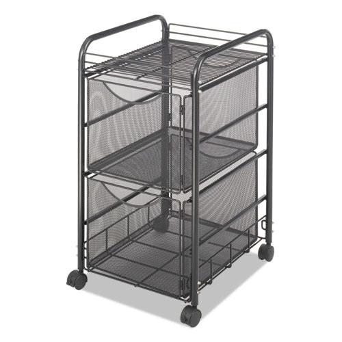 Safco® 5212BL Onyx Mesh Mobile Double File, Metal, 1 Shelf, 2 Drawers, 15.75" x 17" x 27", Black