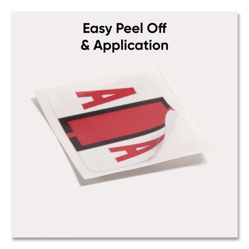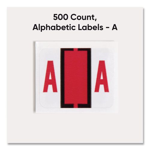 Keep files organized at a glance with these alphabetic labels that feature a wraparound solid color bar and a colored character printed on a white background. Colors are compatible with end tab systems using the bar-style format. Convenient dispensin