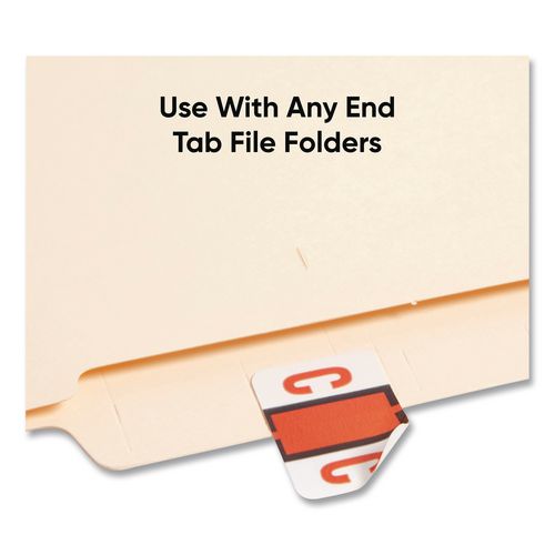 Keep files organized at a glance with these alphabetic labels that feature a wraparound solid color bar and a colored character printed on a white background. Colors are compatible with end tab systems using the bar-style format. Convenient dispensin