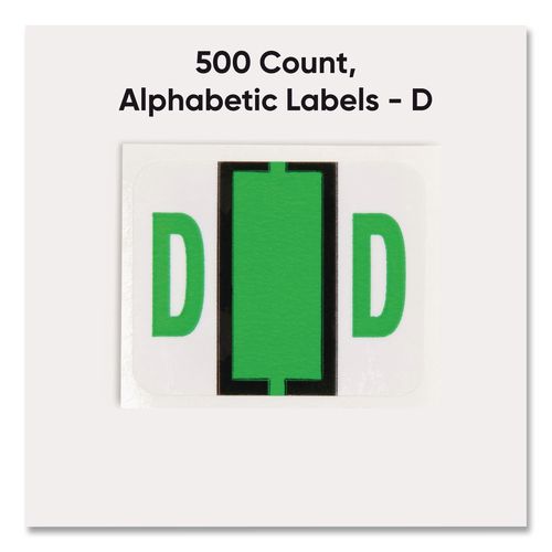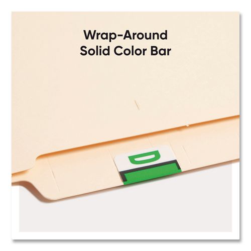 Keep files organized at a glance with these alphabetic labels that feature a wraparound solid color bar and a colored character printed on a white background. Colors are compatible with end tab systems using the bar-style format. Convenient dispensin