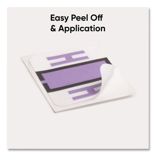 Keep files organized at a glance with these alphabetic labels that feature a wraparound solid color bar and a colored character printed on a white background. Colors are compatible with end tab systems using the bar-style format. Convenient dispensin