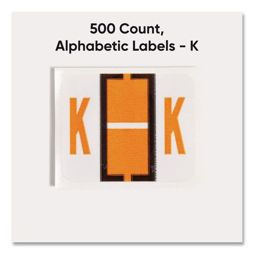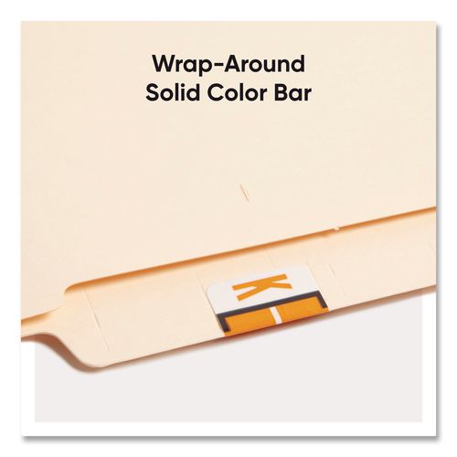 Keep files organized at a glance with these alphabetic labels that feature a wraparound solid color bar and a colored character printed on a white background. Colors are compatible with end tab systems using the bar-style format. Convenient dispensin