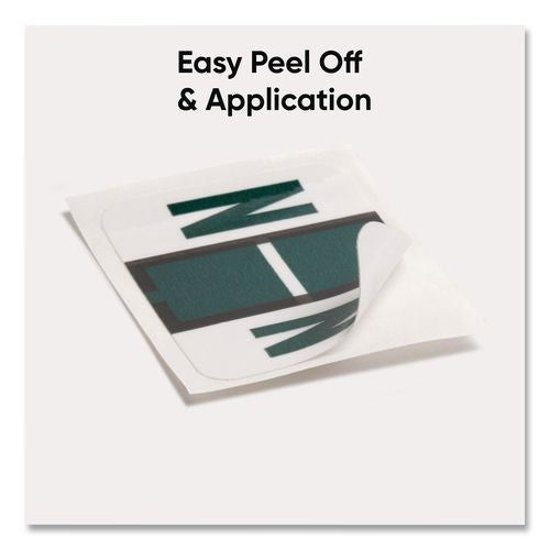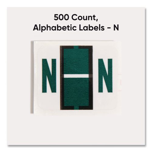 Keep files organized at a glance with these alphabetic labels that feature a wraparound solid color bar and a colored character printed on a white background. Colors are compatible with end tab systems using the bar-style format. Convenient dispensin