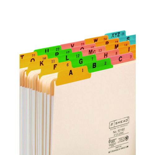 - Straighten up your files and keep documents organized with this set of 25 A-Z guides to organize your filing drawers; each guide has a fused poly 1/5-cut tab in assorted positions.