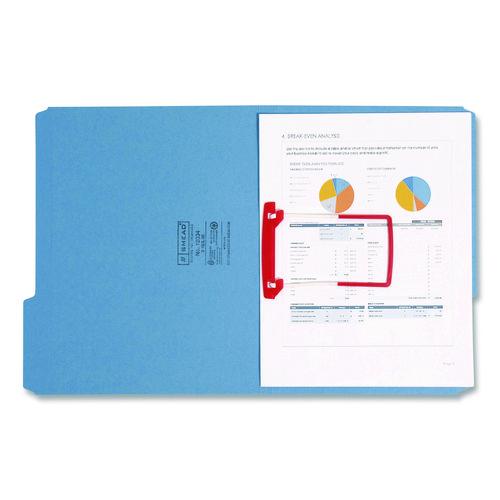 Unique design allows folders to function like ring binders. Flexible self-adhesive fastener attaches to any folder, allowing pages to lie flat for easy viewing or photocopying. Plastic tubing bends as you fold back papers so adding and removing pages