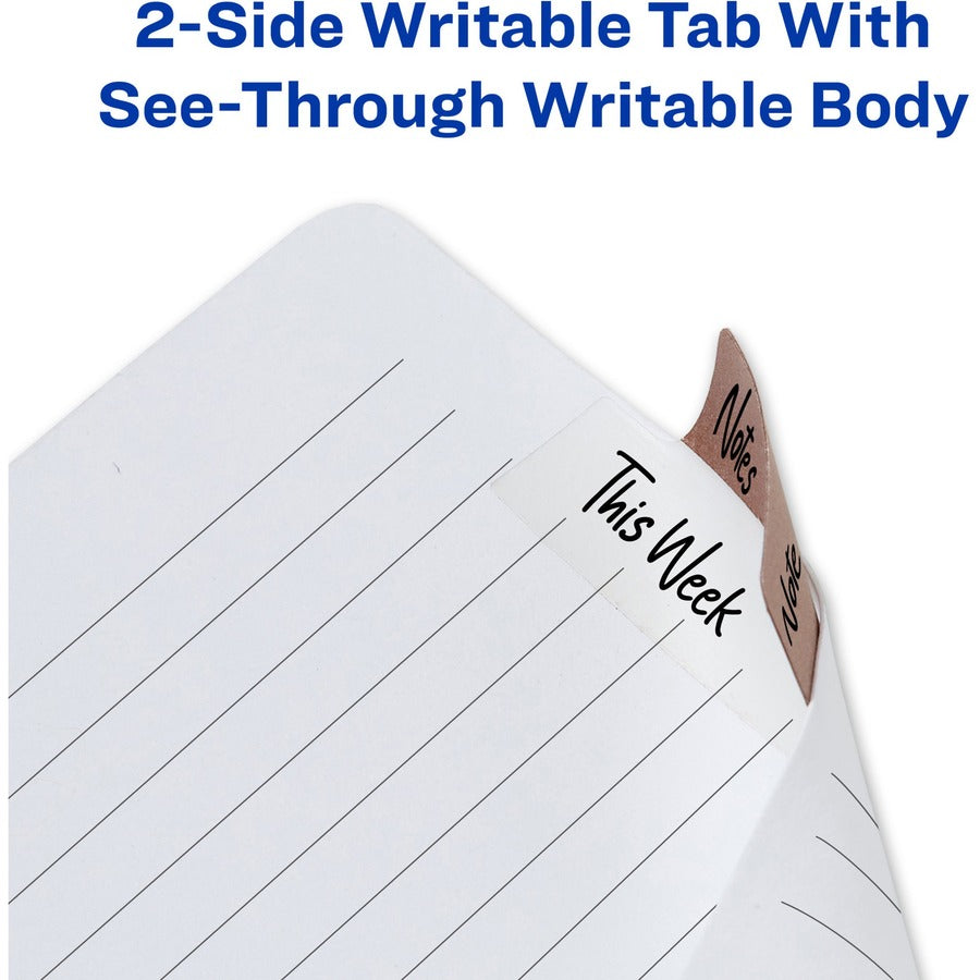 Margin Ultra Tabs are great for organizing, referencing and indexing notebooks, files, books, planners and more. Slim body fits within the page margin. Tabs are ultra-repositionable. They stick securely but remove easily and cleanly with no residue. Smudge-resistant body is writable with pens, markers, pencils and highlighters. Hand-writable body is clear so you can see the text underneath. Ink dry times may vary. Tab may lift some inks. Test before applying.