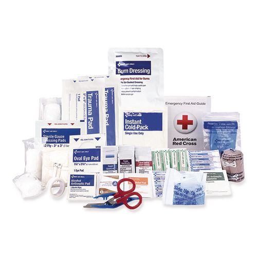 Includes essential first aid supplies for treating minor injuries. Contains 184 pieces of essential first aid supplies used to refill any 50 person ANSI Class A first aid kit. Perfect for refilling first aid kits in offices, light manufacturing facil
