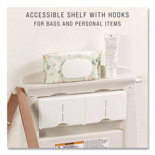 Provide best-in-class safety and antimicrobial protection with the Rubbermaid® vertical baby changing station. The smooth, crevice-free design comes with an adjustable safety belt and built-in