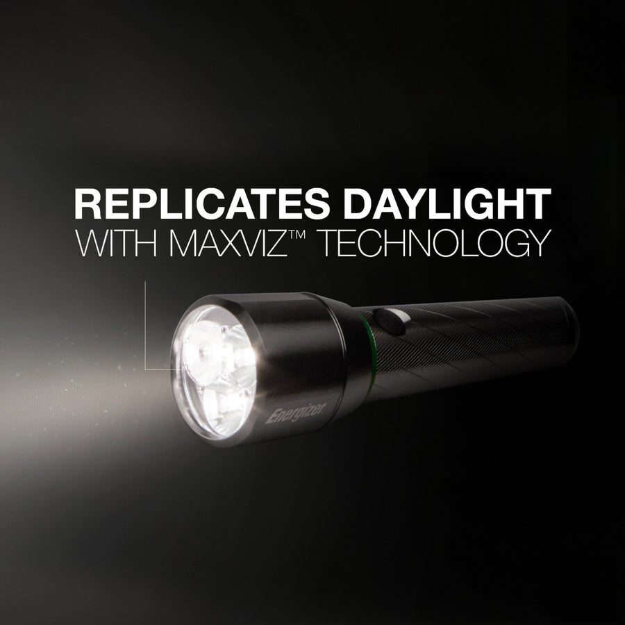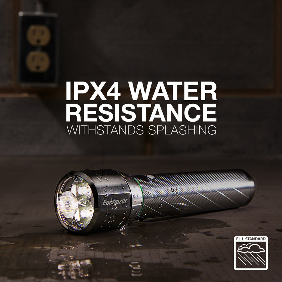 With 1000 lumens, the VisionHD Rechargeable Flashlight delivers a bright light and is made with commercial-grade aluminum alloy for rugged dependability. It also includes a USB port to charge devices as well as USB cable. The light is still powerful even after full smartphone charge. High-performance metal light switches between seven modes: high, low, high spot, low spot, high wide, low wide and strobe for emergency situations. Durable, aircraft-grade aluminum body is compact for convenient storage and use. Stow away in your car, your bag or pocket and always be prepared. Water-resistant lens withstands splashes. Powerful beam distance is up to 200 meters. Flashlight is impact-resistant to drops of 1 meter.