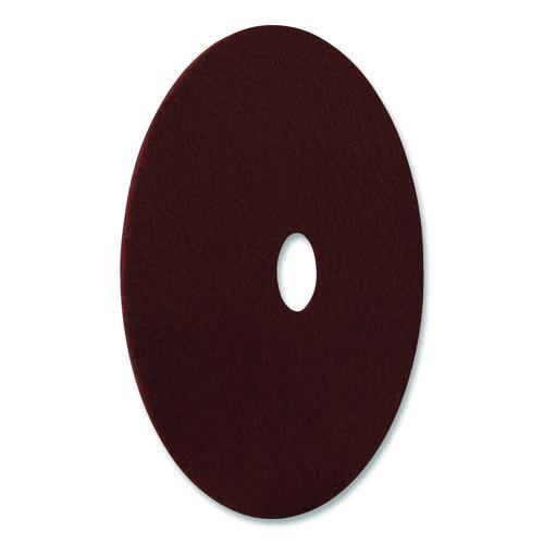 This pad is designed to strip or deep scrub floors without the use of chemicals. It may be used either wet or dry. Used for repairing wood floor finishes and preparing for recoating. Floor Pads Application: Stripping; Diameter: 15"; Color(s): Maroon;