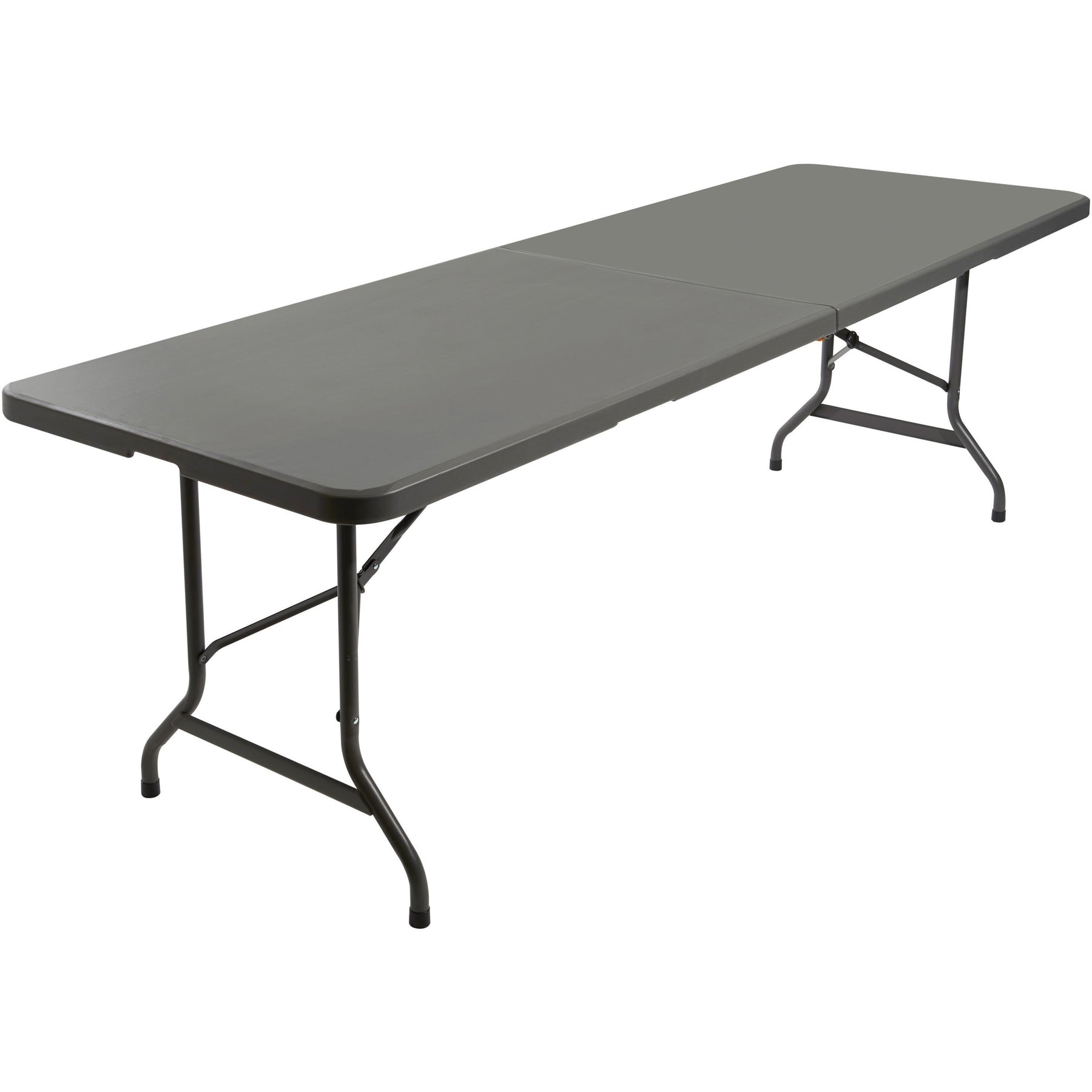 Folding table is made for heavy-duty use indoors or outdoors yet is 30 percent lighter than standard folding tables. 2" tabletop is made of durable, blow-molded, high-density polyethylene that is dent-resistant and scratch-resistant. Tubular legs are made of heavy-gauge steel with a powder-coat finish. 1" round legs fold into recessed cavities beneath the table. Bifold Folding Table is designed to nest with other Iceberg IndestrucTable TOO 1200 Series tables when stacking to allow maximum storage capacity.