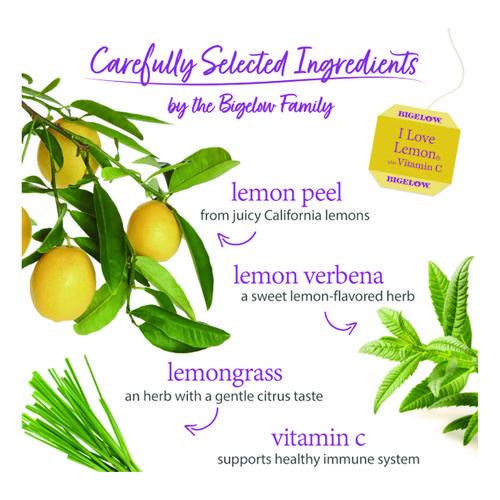 All-natural, beautifully lemony tea contains a full daily dose of Vitamin C in every bag. A touch of hibiscus complements the fruity, slightly tart flavor and aroma perfectly. Individually over