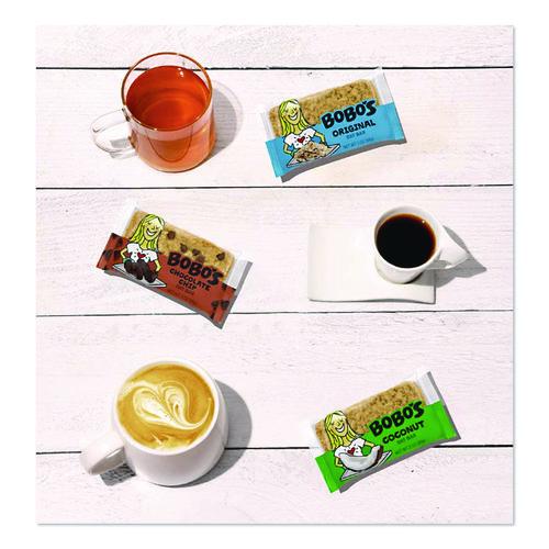 This Bobo's multipack contains oat bars with original, coconut and chocolate chip flavors. Original flavor are hand-baked, 100% whole grains with fresh brown sugar. Whole grain coconut oat bar