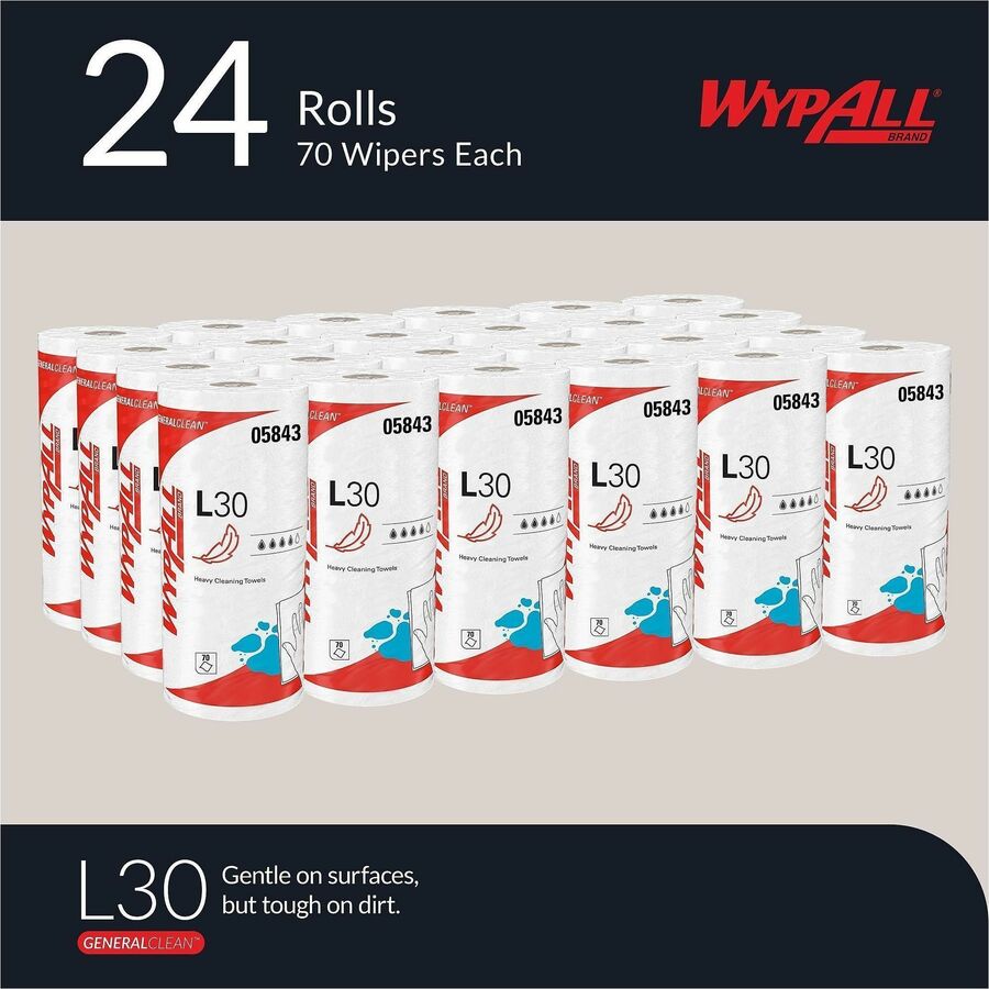 Image of Kimberly-Clark Professional Cleaning Wipe, L30, 70-Sheet, 11"x10-2/5", 24/CT, White