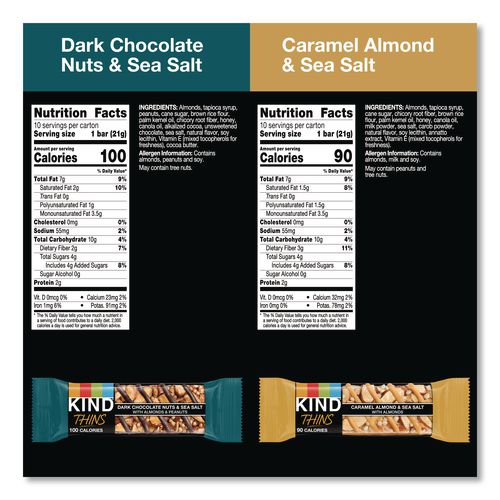 With almonds as the #1 ingredient, these gluten-free bars feature a thin layer of sliced almonds and diced peanuts. These snack bars contain four grams of sugar and 90 calories per serving. Cho