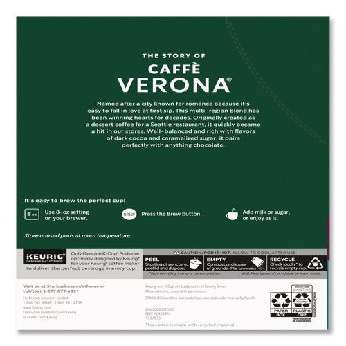 Caffe Verona is a seductive blend of beans from Latin America and Indonesia, with a gentle touch of Italian Roast lending depth, soul and sweetness. A roasty, sweet dark cocoa flavor, makes it