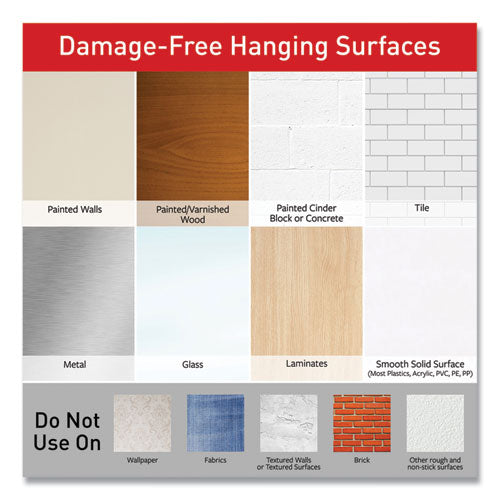 Command Damage-Free Hangingâ€holds strongly, removes cleanly. Forget about nails, screws and tacks, Command Hooks are quick and easy to hang, and they support a surprising amount of weight, too. Included adhesive strips stick to many surfaces: