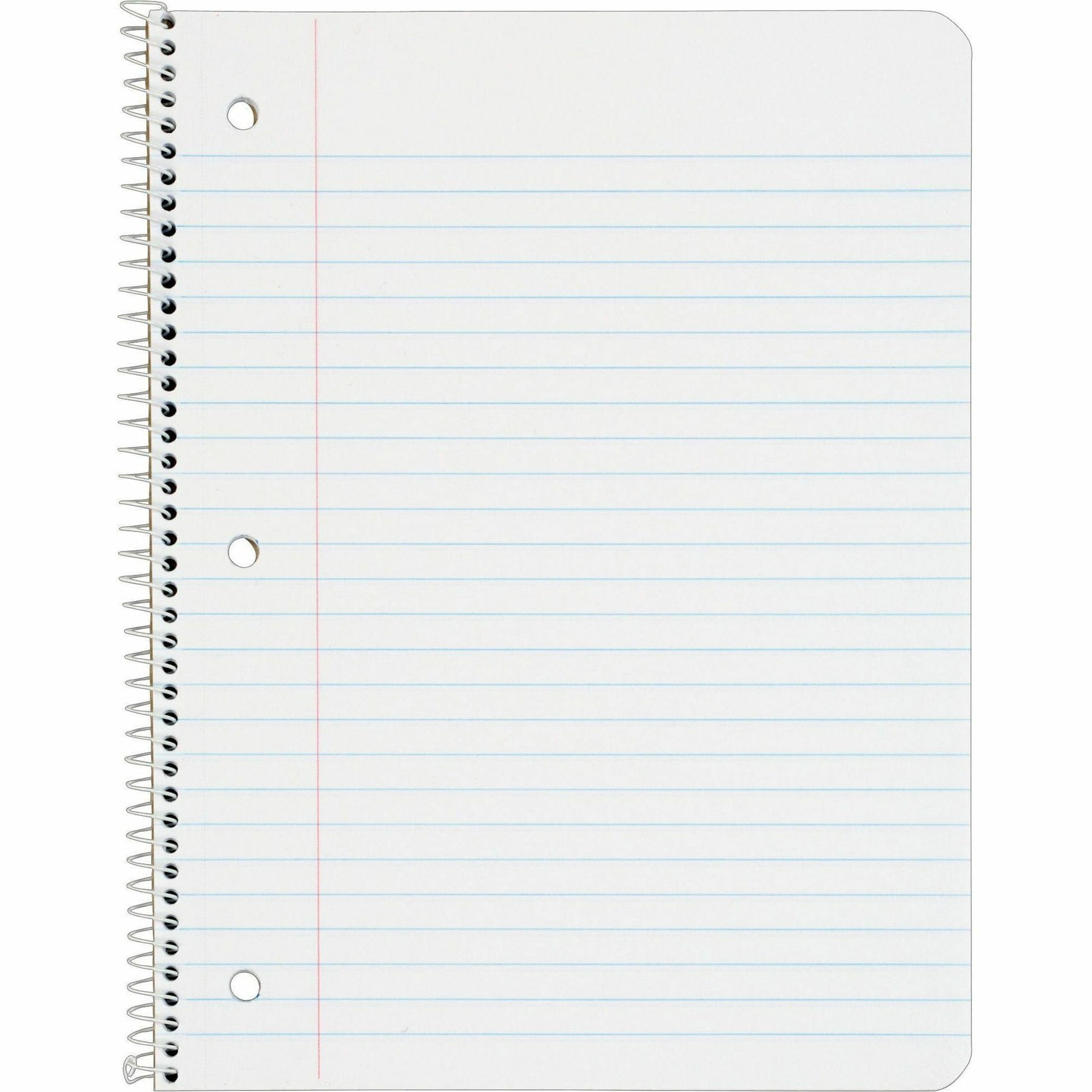 One-subject notebook contains three-hole punched, bright-white paper for neat note-taking. Three-hole punched design allows notebooks or individual sheets to be place directly into standard, three-ring binders. Legal/wide-ruled, 15 lb. sheets feature a light blue ruling and Letr-Trim perforation for clean and easy sheet removal. Coil-lock wire binding on the side won't snag clothing or scratch desktops. 27 point chipboard backer helps protect your notes.