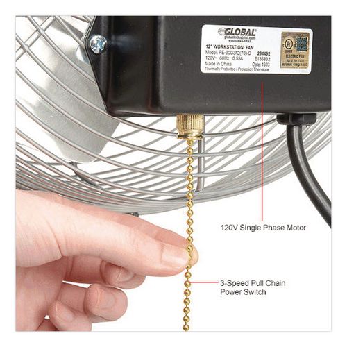 This Industrial Workstation Fan provides refreshing air flow without taking up valuable floor space in automotive shops, assembly stations, workbenches, and any workstation that requires cooling and ventilation. It has an efficient three-speed single- Fan head rotates 360 ° horizontally and vertically for flexible airflow direction.