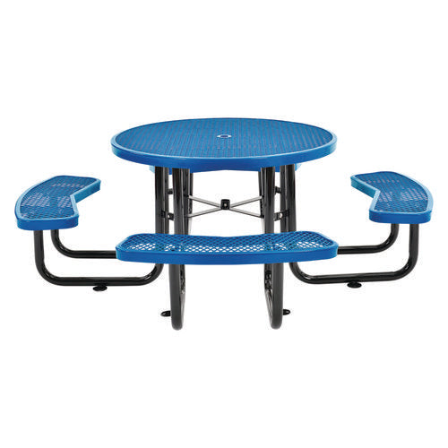 Image of Global Industrial® Expanded Steel Picnic Table, Round, 46" Dia x 29.5"h, Blue Top, Blue Base/Legs