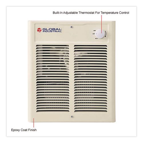 Warm up workspaces that need heat on the double. The Global Industrial® Fan Forced Wall Heater offers convenient and quick heat for a multitude of workspaces. This fan-forced heater is made to push air over a heating element and then circulate the h- Wall mountable and recessed into the wall for minimal space occupancy.