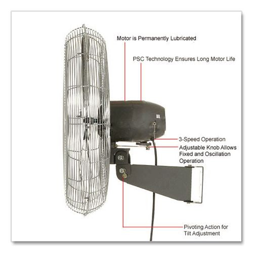 Provides refreshing air flow without taking up valuable floor space in any setting like loading docks, offices, schools, offices and kitchens. It has an efficient three-speed open-air over PSC-type ball bearing motor that is permanently lubricated an