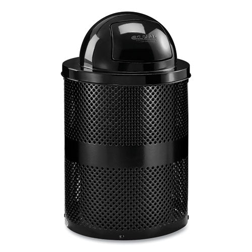 Thermoplastic receptacles are ideal for schools, public parks, outdoor office areas and more. Lid and base are shielded with a black powder coat finish for rust-prevention and resilience against the elements. Features mesh with 0.75" openings. Dome l- Great for schools, parks, outdoor office areas and more.