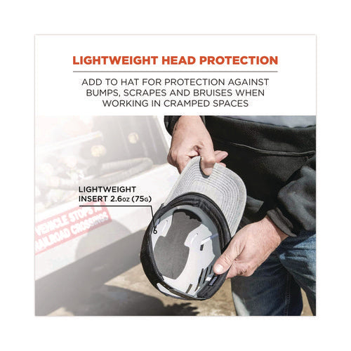 Universal bump cap insert is an impact-resistant shell that inserts into your headwear to protect against bumps, scrapes and bruises. Flexible horizontal and vertical sides of the shell allow it to fit both a variety of hats/caps and head shapes. Tri