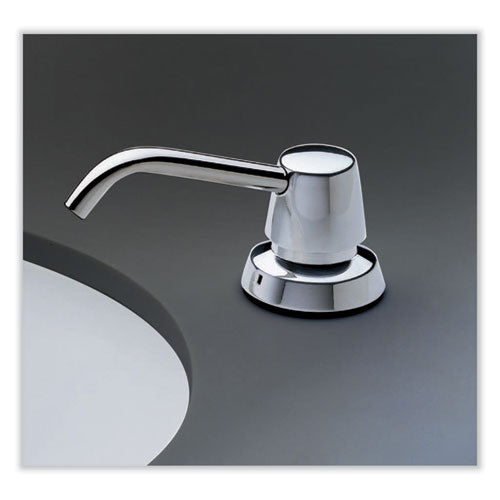 Corrosion-resistant soap dispenser has vandal-resistant locking cover and free-turning spout. Body and shank are high-impact-resistant ABS plastic with a shatter-resistant polyethylene container. Soap Dispensers Type: For Liquids; Interior Volume Cap