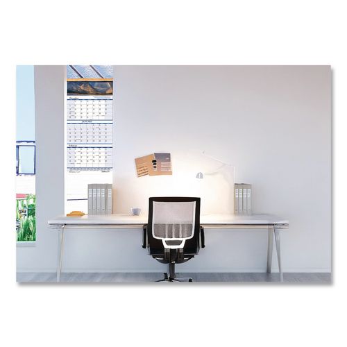 Each page features a unique scenic image and an inspirational quote. Three-month per page layout with current month unshaded to contrast with past month and next month. Unruled daily blocks for planning on all three months. Strong wire-binding firmly- Each month features a unique, scenic image and an inspirational quote.