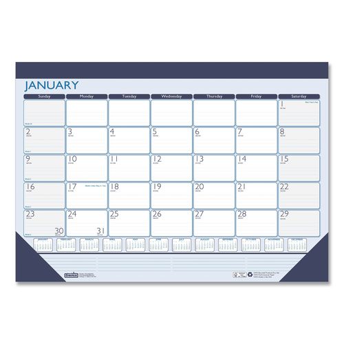 House of Doolittle recycled Contempo monthly desk pad calendar, 12 months January to December has soft colors and graphics that is pleasing to the eye. Full-year reference calendar aids in planning throughout the year. Large ruled daily blocks for ne- January - December featuring 12 months for easy planning.