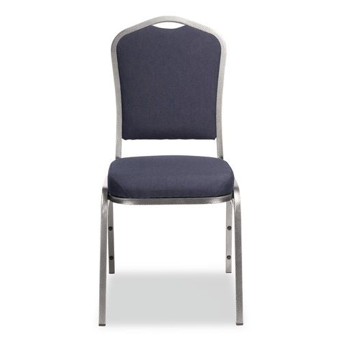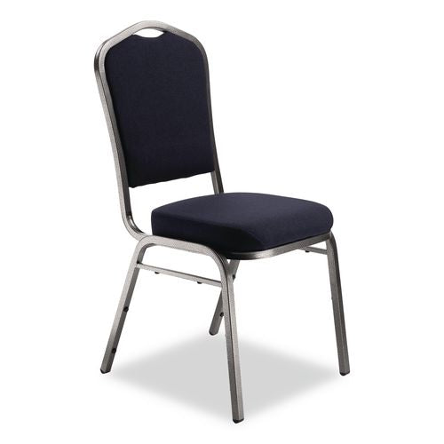 NPS® 9354SV2 9300 Series Deluxe Upholstered Stack Chair, Fabric, Supports 500 lb, 19" Seat Ht, Midnight Blue Seat/Back, Silver Base, 2/PK