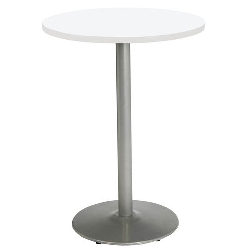 Contemporary and comfortable breakroom/cafeteria furniture. Table and 4 barstool set. This pedestal table has a 1.25" thick high-pressure laminate top that's durable and easy to clean. The top has an attractive edge that won't crack or peel. The soli- Table is 1.25" thick with a high-pressure laminate surface and T-mold edge.