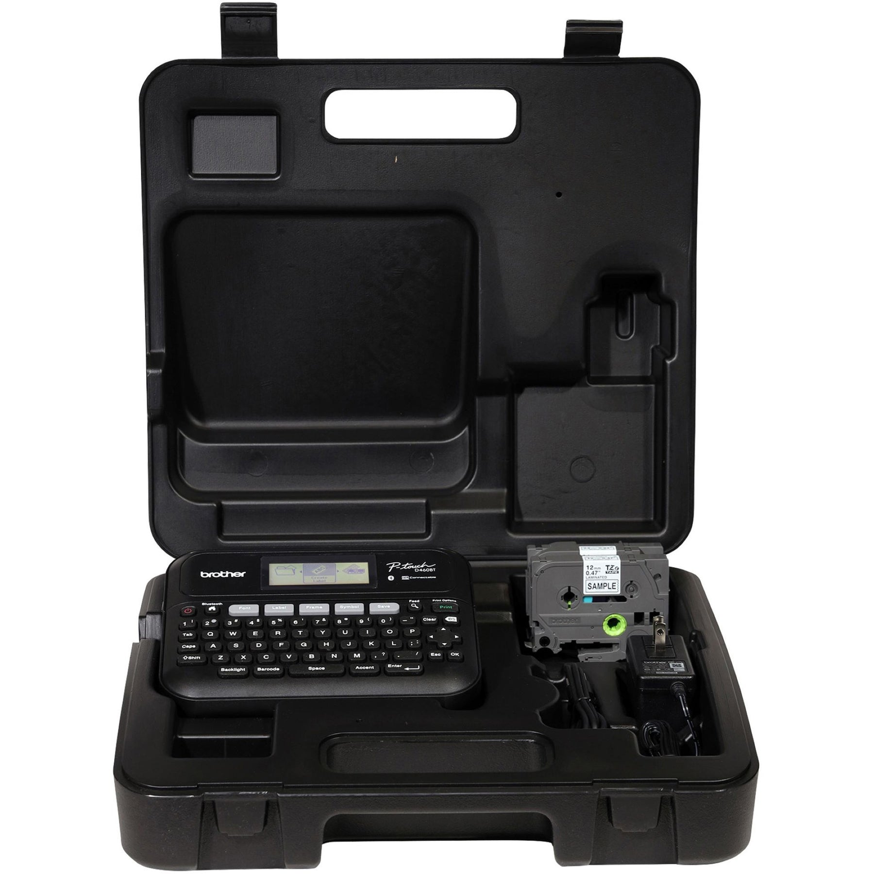 Business Expert Connected Label Maker features high-resolution printing for sharper bar codes, logos and more. Create labels using your computer or mobile phone via Bluetooth with P-touch Editor Software1 and Brother iPrint app. Advanced connectivity allows multiple users with their own device to work with the same labelmaker. Increase efficiency on high-volume labeling jobs with faster printing and built-in, automatic label cutter. Its maximum printing speed is 20mm per second. Enjoy sharp, vivid 180 dpi resolution. Easily type using quick, one-touch formatting keys and large 20-character, two-line screen preview. Choose between 16 fonts, 15 font styles, 140 frames, 800 symbols and 40 pre-set label templates. High memory capacity saves up to 70 used labels. Labelmaker uses 3/4" thick tape and Brother Genuine TZe Label Tapes for indoor and outdoor label versatility. Power with AC adapter (included) or six AAA batteries (not included).