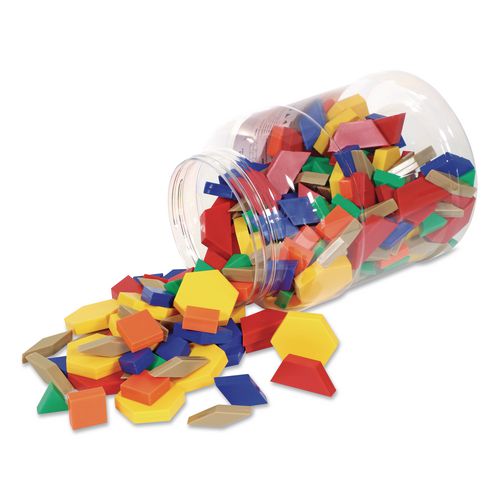 The Learning Resources® Plastic Pattern Blocks provide a hands-on method to teach math concepts. The pieces are sized just right for a child's hands. The set comes with 250 blocks in a combination of six sizes and colors. They store away neatly in t- Teach a range of math concepts with pattern blocks.
