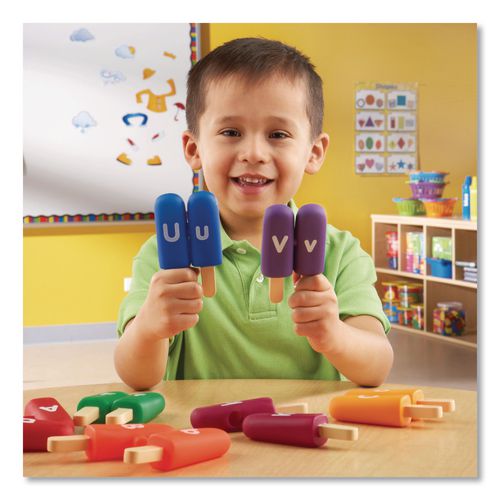 Play popsicles reinforce uppercase and lowercase letter-recognition through matching. Double-sided design includes all 26 letters. Popsicles are also perfect for fine-motor practice and imaginative play. Popsicles are designed for children ages 2 and