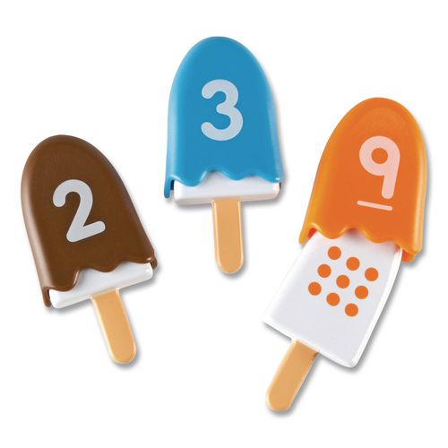Build number and fine-motor skills with these irresistible ice cream pops. Pop the numbered shell over the ice cream pop with the matching number of dots. Perfect for practicing 1-to-1 correspondence with numbers 1-10. Great for color matching too. I- Build number and color recognition, early math and fine motor skills with irresistible ice cream pops.