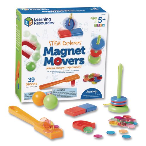 Kids experiment with the motion of magnetic attraction and other early physics concepts. Develop critical thinking, cause and effect and problem solving skills with this magnetic wand and set of magnetic accessories. Includes Activity Guide! We're Le- Spark curiosity, introduce early physics concepts and provide hands-on learning with the effects of magnetism.