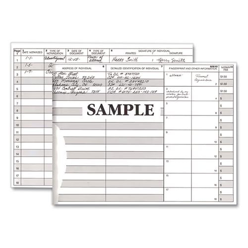 A simple yet comprehensive way to keep a detailed recording of notarial acts”complies with state laws. Numbered pages with space for 522 entries and thumbprints. Form contains record of: date and type of document, name and signature, witness, addre