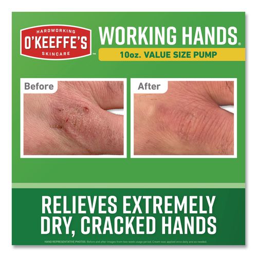 O'Keeffe's ® Working Hands ® Hand Cream is a concentrated hand cream that heals, relieves and repairs extremely dry, cracked hands. When used daily, O'Keeffe's ® Working Hands ® is clinically proven to instantly boost moisture levels, create a protec- Ideal for extremely dry, cracked hands.