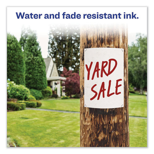 Durable jumbo chisel tip (5/8") marks in a variety of line widths, from thin to extra wide - great for making signs, posters and banners. Extra-large barrel with generous, long-lasting ink supply. Won't dry out - leave cap off up to 1/2 hour! The ink