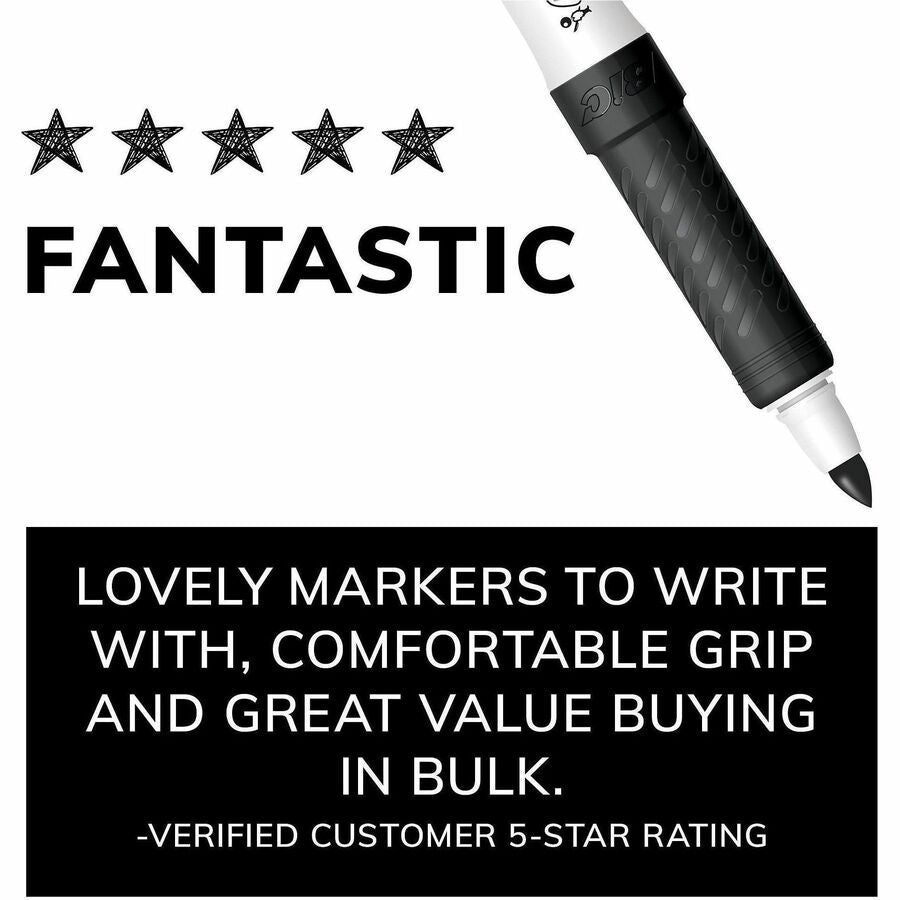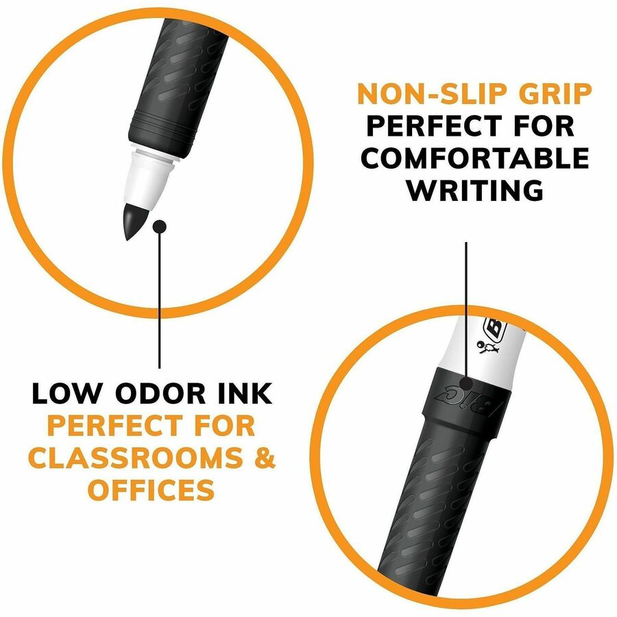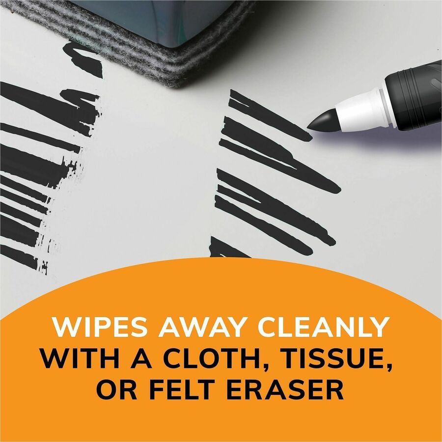 Perfect for use on dry erase boards, glass and most non-porous surfaces. It features a molded grip zone for added control and it easily erase with a dry cloth, tissue or felt eraser. Low-odor, ink. Marker Ink Type: Dry Erase; Marker Tip Type: Bullet;